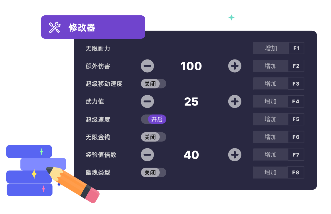 为您提供2000+单机游戏的修改服务,覆盖当前99%的热门游戏 多平台支持 操作简单,稳定安全